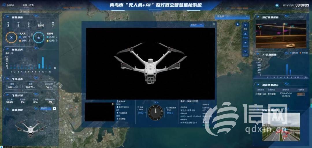 青岛市“无东谈主机+AI”街灯低空贤人巡检系统。(起原:青岛市交通运输局)