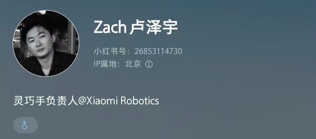 在卢泽宇的个东说念主酬酢平台上,其自我先容为小米机器东说念主奢睿手谨慎东说念主。
