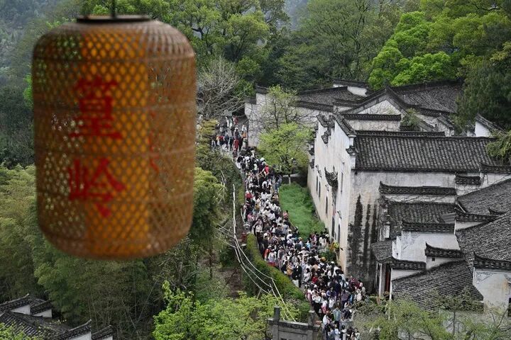 游客在江西省婺源县篁岭古村内游览。新华社发(赵国政 摄)