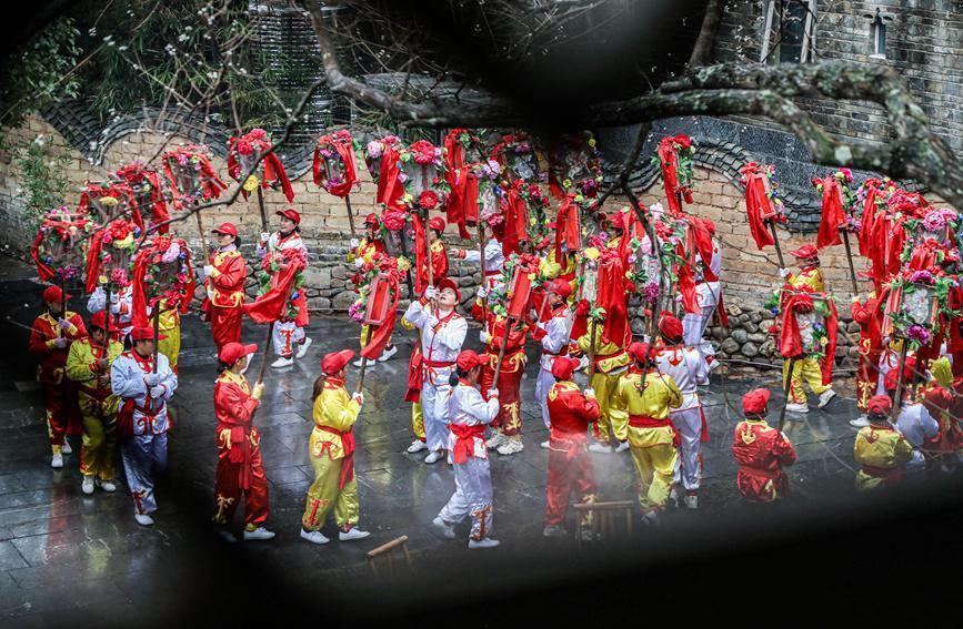 演员们正在进行走牌灯饰演。阳海翔摄